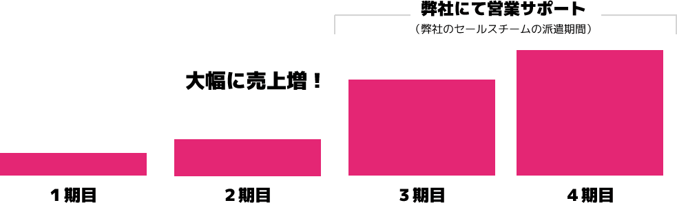 弊社より、複数人のセールスマンチームの派遣を行ない、前期の売上の2倍以上の成果を1期目で達成。